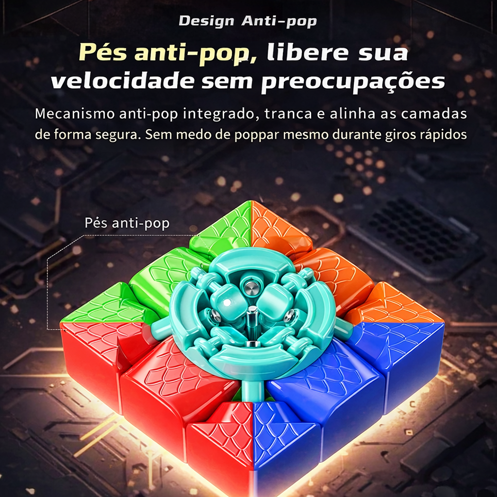A estrutura foi pensada para oferecer excelente corte de cantos e realinhamento rápido, permitindo resolver o cubo mesmo em posições mais difíceis. Um verdadeiro aliado para quem quer evoluir no speedcubing ou melhorar raciocínio lógico, memória e concentração.