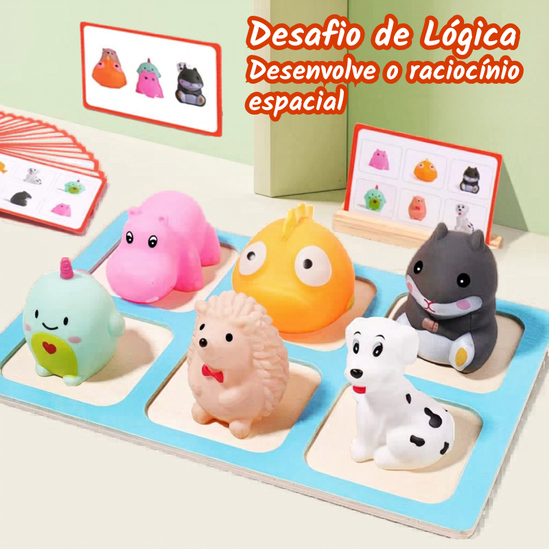 Com um sistema de desafios envolvente, a criança precisa organizar peças, identificar padrões e montar soluções, estimulando o cérebro de forma prática e intuitiva.