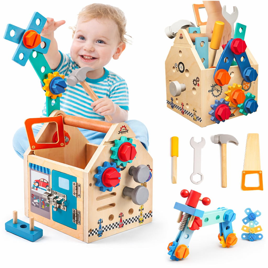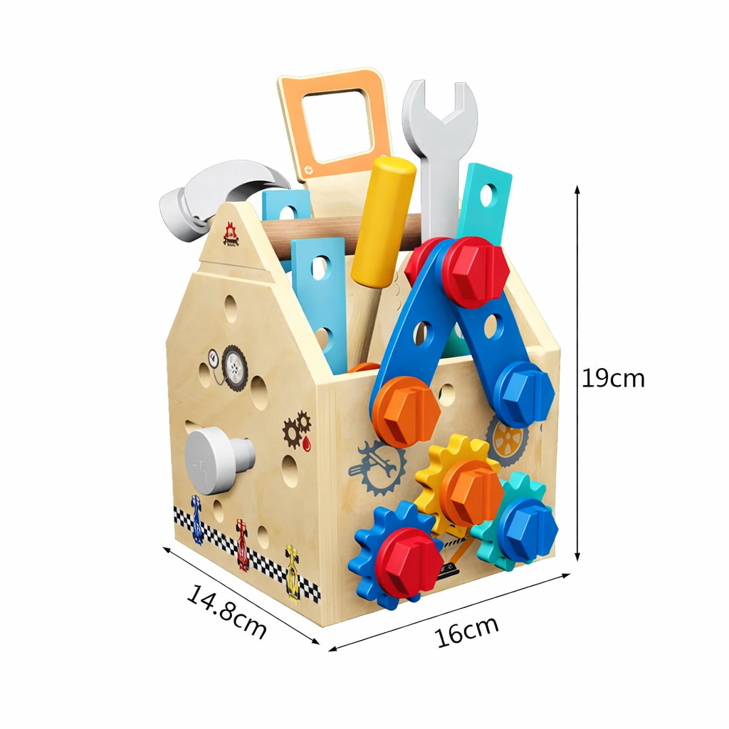 🔧🧰 Mini Construtor Montessori – Caixa de Ferramentas de Madeira para Montar e Reparar