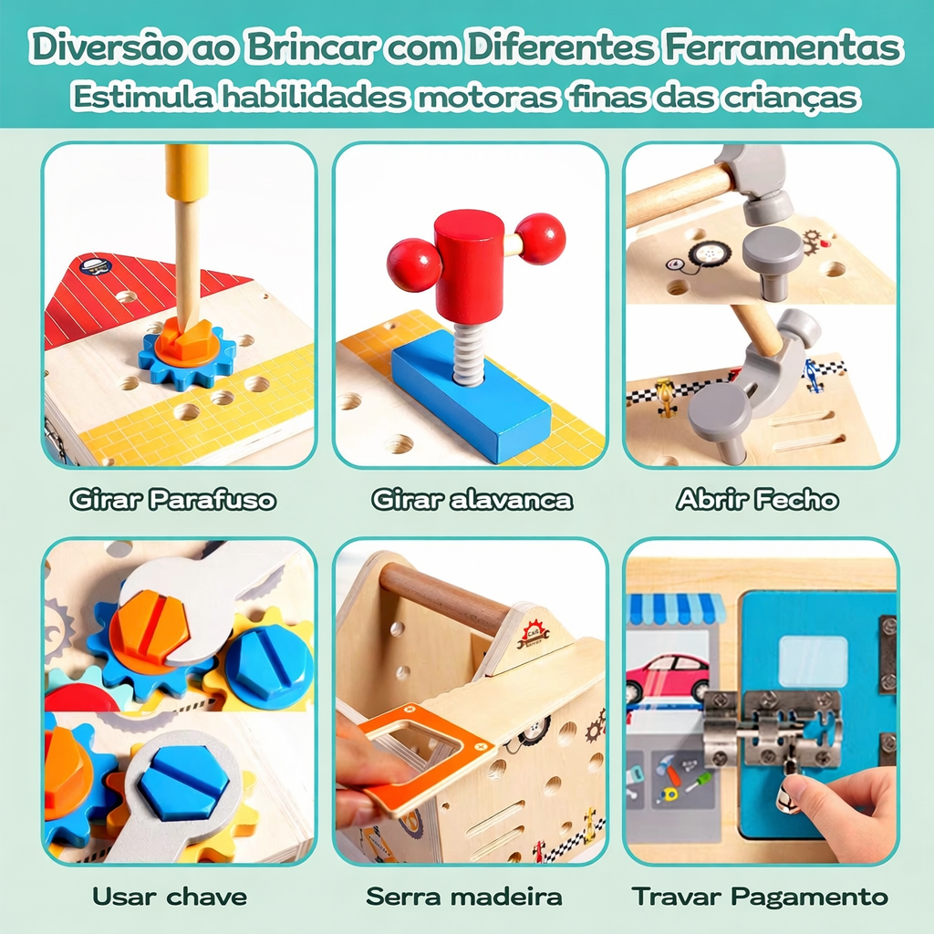 • Tipo: Caixa de ferramentas educativa estilo Montessori